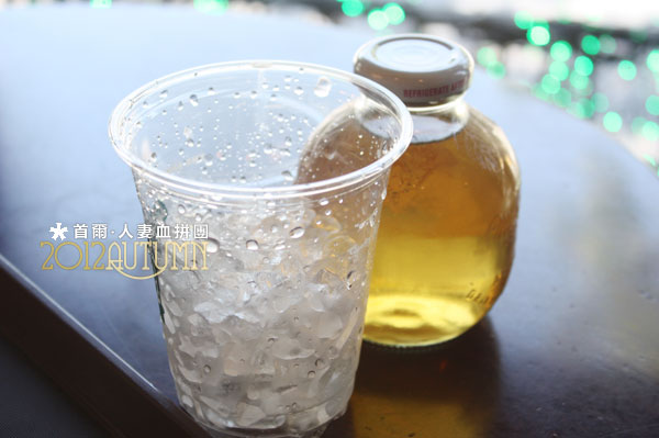 點了一杯無咖啡因的蘋果汁,好漂亮的瓶子啊~
